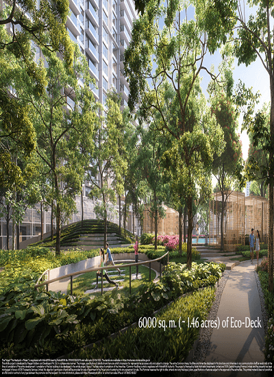 ✓ 8 towers out of that 4 tower in 1st phase, each 35 stories high with 4-level basements + Ground + Podium + Eco Deck